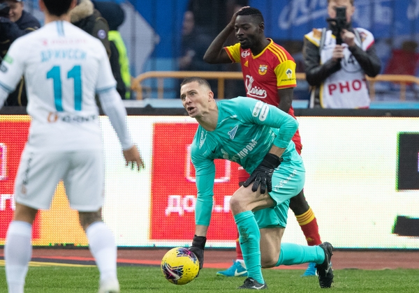 10.11.2019. Россия, Тула, «Арсенал». Российская Премьер-Лига 2019/20, 16-й тур, «Арсенал» — «Зенит». На снимке в бирюзовой форме: Михаил Кержаков, вратарь ФК «Зенит».Автор: Вячеслав Евдокимов / ФК «Зенит»