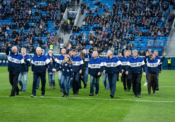 01.12.2019. Россия, Санкт-Петербург, «Газпром Арена». Ветераны «Зенита»-84 совершили круг почета в честь 35-летия первого чемпионстваперед матчем Российской Премьер-Лиги 2019/20, 18-й тур, «Зенит» — «Спартак».Автор: Вячеслав Евдокимов / ФК «Зенит»