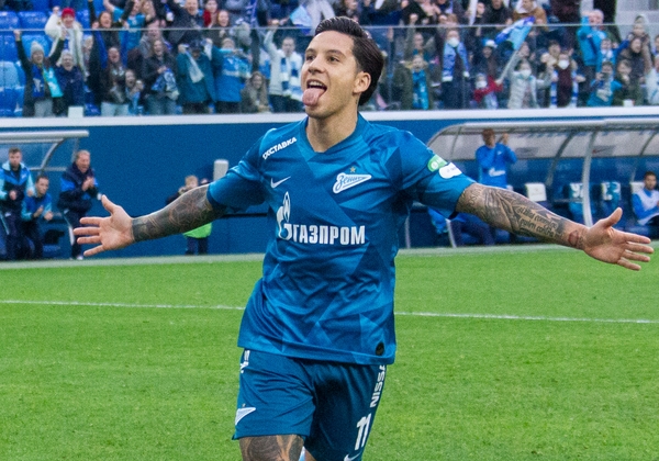 14.03.2020. Россия, Санкт-Петербург, «Газпром Арена». ТИНЬКОФФ Российская Премьер-Лига 2019/20, 22-й тур, «Зенит» — «Урал». На снимке в синей форме: Себастьян Дриусси, нападающий ФК «Зенит».Автор: Вячеслав Евдокимов / ФК «Зенит»