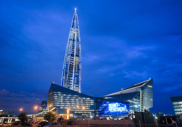 05.07.2020. Россия, Санкт-Петербург. Город встречает команду победителей. Подсветка «Лахта центра».Автор: Роман Киташов / ФК «Зенит»