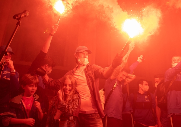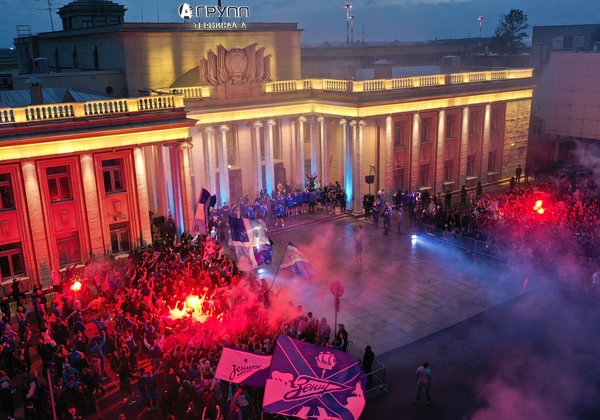 05.07.2020. Россия, Санкт-Петербург. Город встречает команду победителей. «Зенит» празднует победу в аэропорту Пулково после матча Тинькофф Российской Премьер-лиги 2019/20, 26-й тур, «Краснодар» — «Зенит».Автор: Фарит Налимов / ФК «Зенит»